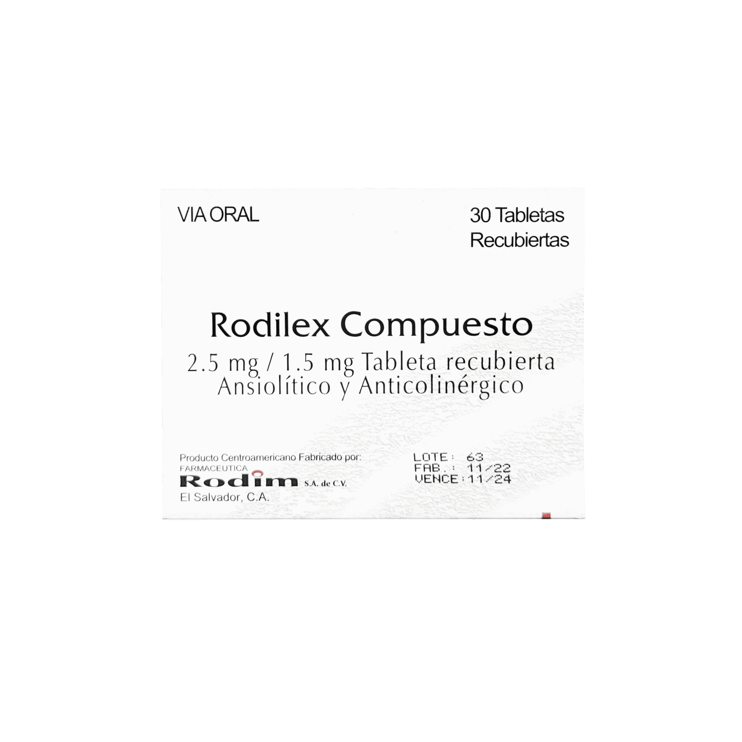 Rodilex Compuesto 2.5mg/1.5 mg, 30 tabletas recubiertas